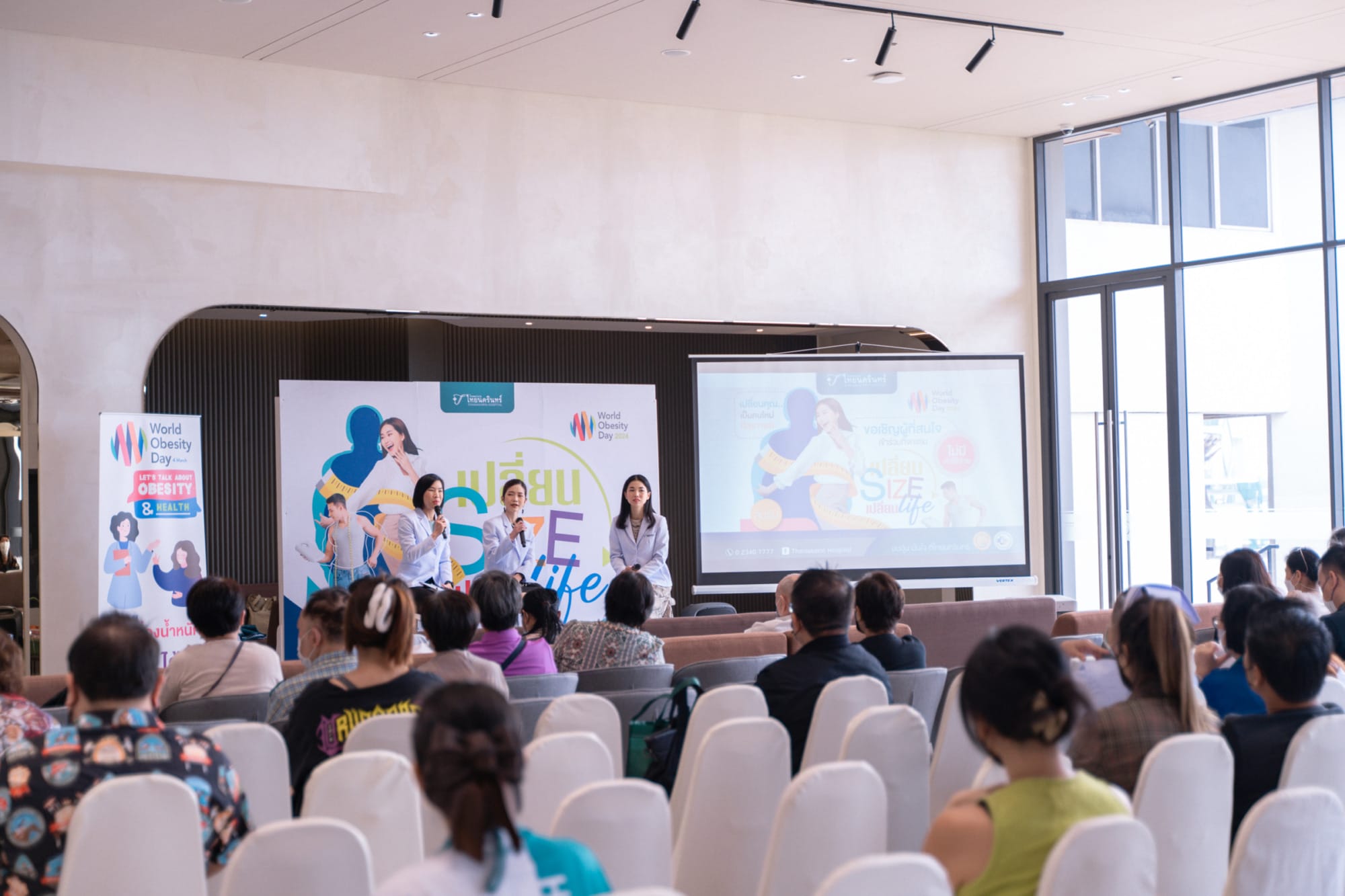 ภายในงานมีเสวนาให้ความรู้จากวิทยากรผู้ทรงคุณวุฒิ อาทิ เสวนาสุขภาพในหัวข้อ ‘โรคอ้วน ภัยเงียบ’ โดยแพทย์หญิงกรกฎ ดำรงกิจชัยพร แพทย์ประจำแผนกอายุรกรรมเบาหวานและต่อมไร้ท่อ เสวนาสุขภาพในหัวข้อ ‘สุขภาพดีได้แค่เปลี่ยน Size เปลี่ยน Life’ โดยแพทย์หญิงอรกมล อินกองงาม แพทย์หัวหน้าศูนย์ส่งเสริมสุขภาพองค์รวม และร่วมแชร์ประสบการณ์ในการลดน้ำหนักอย่างไรให้ประสบความสำเร็จ โดยแพทย์หญิงมาริสา ทศมาศวรกุล สูติ-นรีแพทย์ โรงพยาบาลไทยนครินทร์