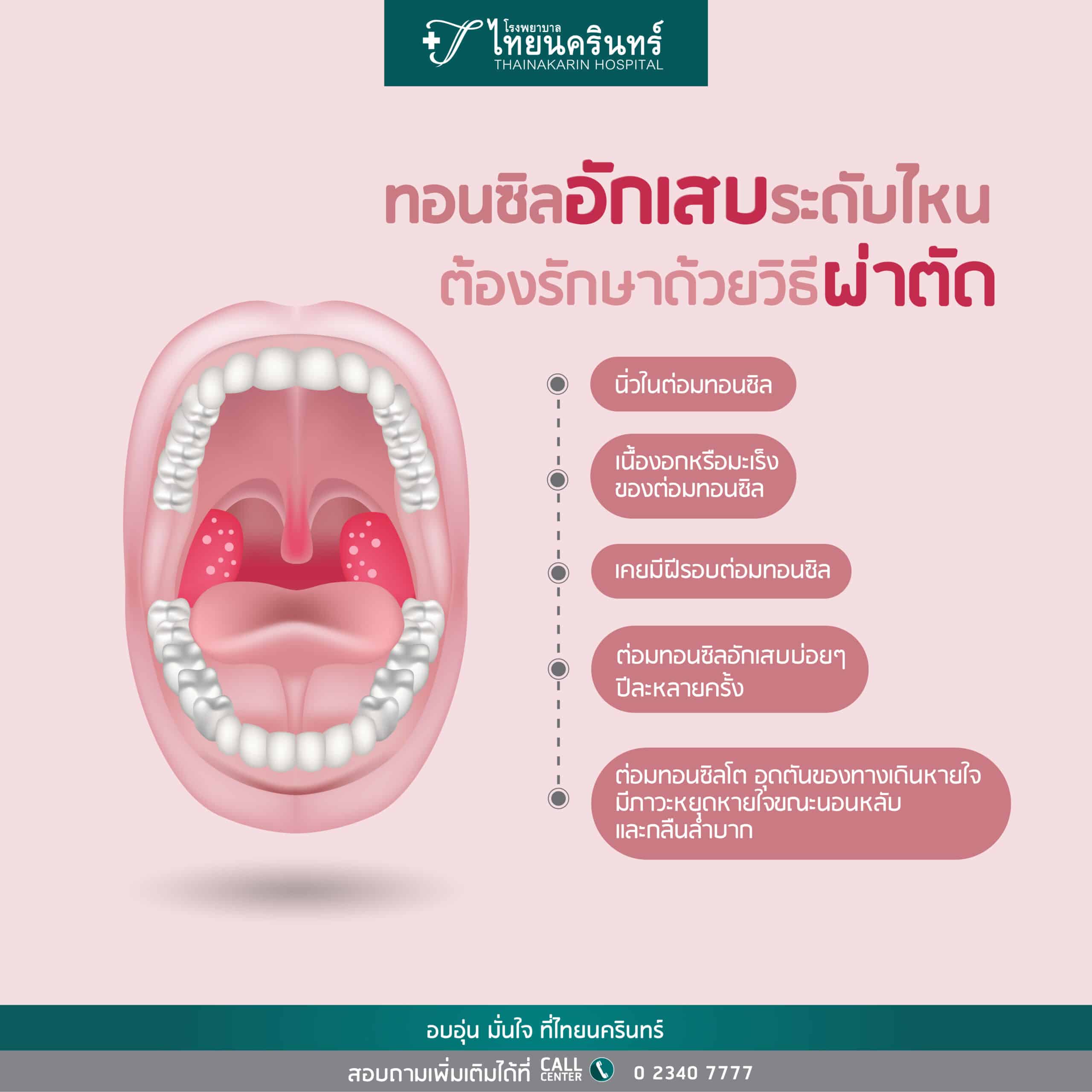 - เคยมีฝีรอบต่อมทอนซิล ต้องรับการเจาะเอาหนองออก ควรนัดมาผ่าต่อมทอนซิลหลังจากหายอักเสบแล้ว