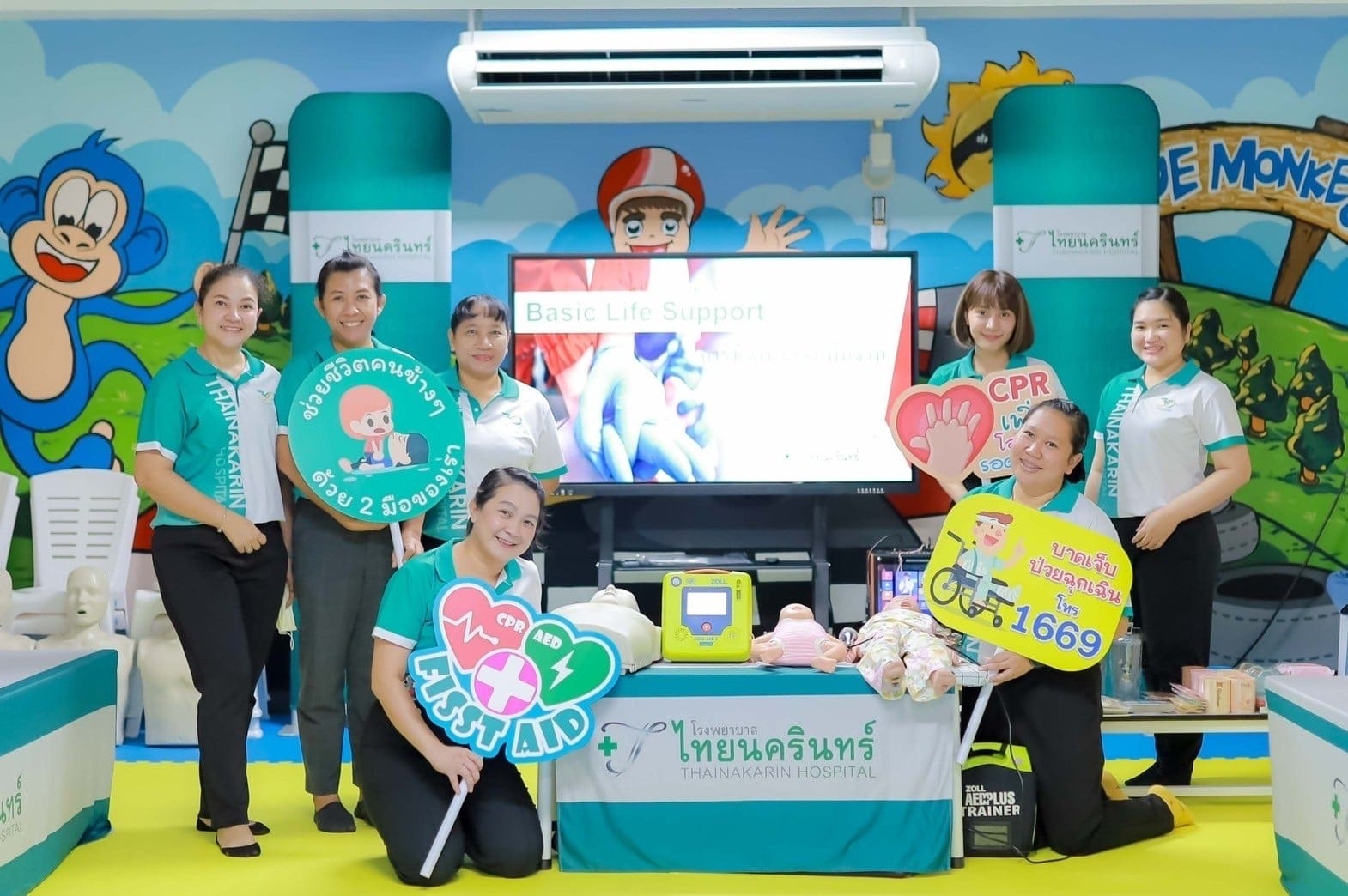 โรงพยาบาลไทยนครินทร์จัดอบรมหลักสูตร “การเฝ้าระวังภาวะโรคและการจัดการภาวะฉุกเฉินในเด็ก” โดยพยาบาลวิชาชีพ เพื่อเป็นการส่งเสริมความรู้ ความเข้าใจให้กับบุคลากรเกี่ยวกับโรคต่างๆ ในการดูแลสุขภาพของนักเรียนได้อย่างถูกวิธีตามมาตรการทางการแพทย์รวมถึงอุบัติการณ์ต่างๆ ที่มีโอกาสเกิดขึ้น เช่น อุบัติเหตุ การสำลัก ภาวะหัวใจหยุดเต้นเฉียบพลัน ภายในงานยังมีการสอน CPR เพื่อช่วยเหลือผู้ป่วยที่หัวใจใกล้จะหยุดเต้นหรือหยุดเต้นไปให้กลับมาหายใจ หรือลมหายใจไหลเวียนได้ตามปกติ รวมถึงฝึกการใช้เครื่องช็อคหัวใจอัตโนมัติ AED ซึ่งหากบุคลากรมีความรู้และทักษะที่ถูกต้อง จะทำให้บุคลากรและนักเรียนทุกคนมีความปลอดภัยห่างไกลจากโรคต่างๆ โรงพยาบาลไทยนครินทร์ขอร่วมเป็นส่วนหนึ่งในการดูแลสุขภาพของทุกท่าน ณ โรงเรียนอนุบาลนานาชาติต้าตี้ สาขาธนบุรี วันที่ 29 กันยายน 2566