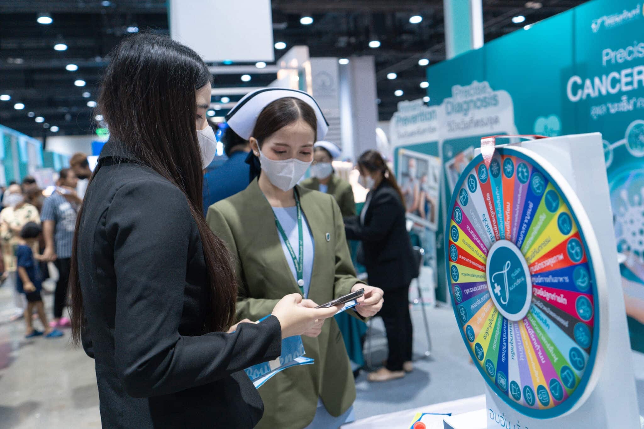 ภายในบูธของโรงพยาบาลไทยนครินทร์ (บูธ C5) พบกับการคัดกรองความเสี่ยงมะเร็งเบื้องต้น พร้อมให้คำปรึกษาเรื่องสุขภาพโดยพยาบาลวิชาชีพ จำหน่ายโปรแกรมตรวจสุขภาพราคาสบายกระเป๋า กิจกรรมแชะแอนด์แชร์ หมุนวงล้อเสี่ยงโชคลุ้นรับของรางวัลมากมาย
