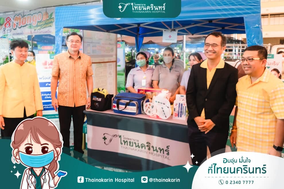 โรงพยาบาลไทยนครินทร์ เข้าร่วมกิจกรรมออกบูธในงานวันมะม่วงและของดีเมืองแปดริ้ว ครั้งที่ 52 ประจำปี 2566 ซึ่งจัดขึ้นโดยสำนักงานเกษตรจังหวัดฉะเชิงเทรา โดยมี นายขจรเกียรติ รักพานิชมณี ผู้ว่าราชการจังหวัดฉะเชิงเทรา เป็นประธานกล่าวเปิดงาน พร้อมให้เกียรติเยี่ยมชมบูธของโรงพยาบาลไทยนครินทร์ ซึ่งเป็นหน่วยบริการจุดปฐมพยาบาลเบื้องต้นเพื่อดูแลผู้เข้าร่วมงาน พร้อมสนับสนุนและมอบของที่ระลึกให้กับผู้เข้าร่วมงานและทางสำนักงานเกษตรจังหวัดฯ โดยมี นายแพทย์วสันต์ อภิวัฒนกุล ผู้อำนวยการบริหาร ให้เกียรติร่วมต้อนรับท่านผู้ว่าฯ