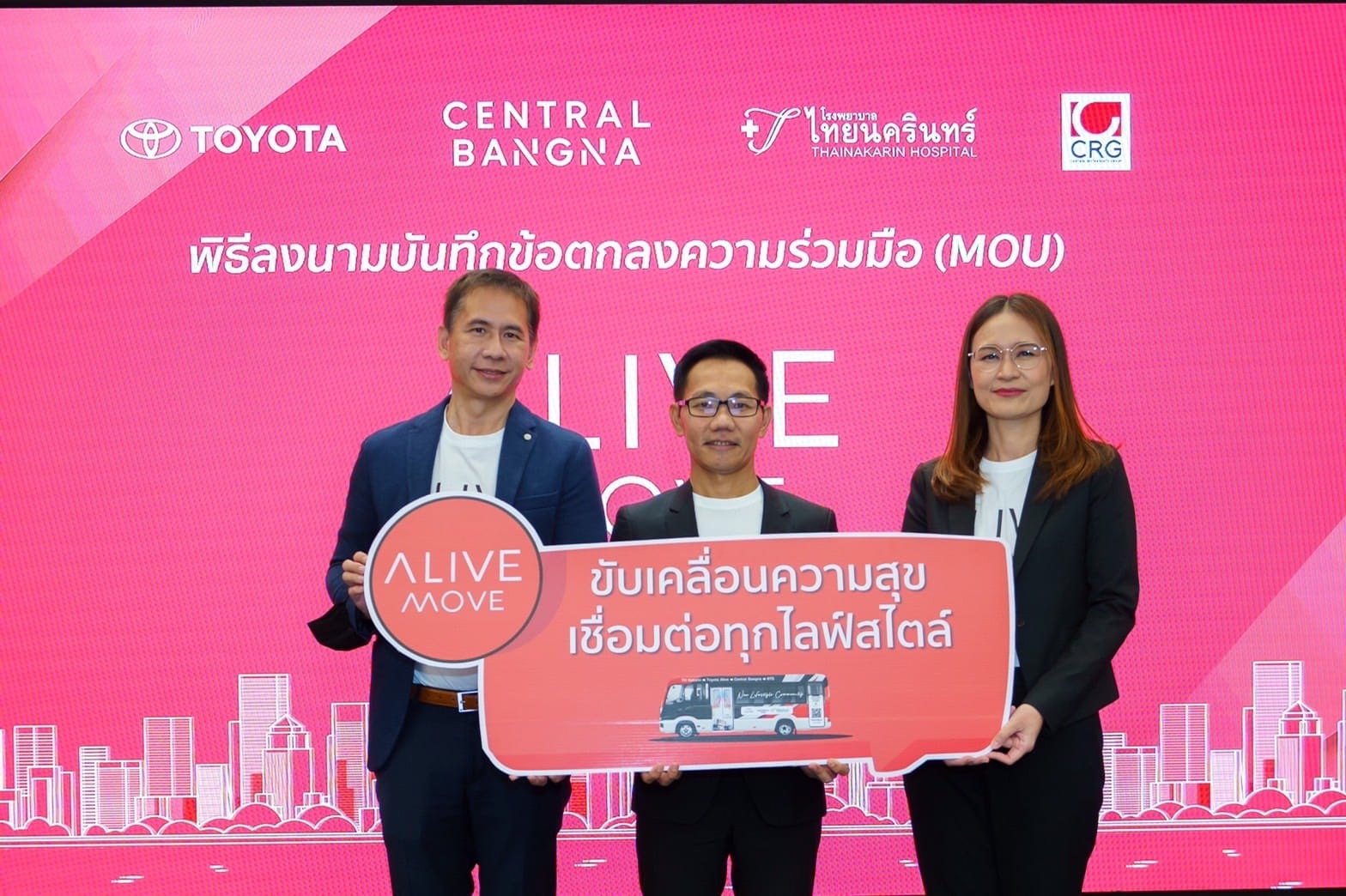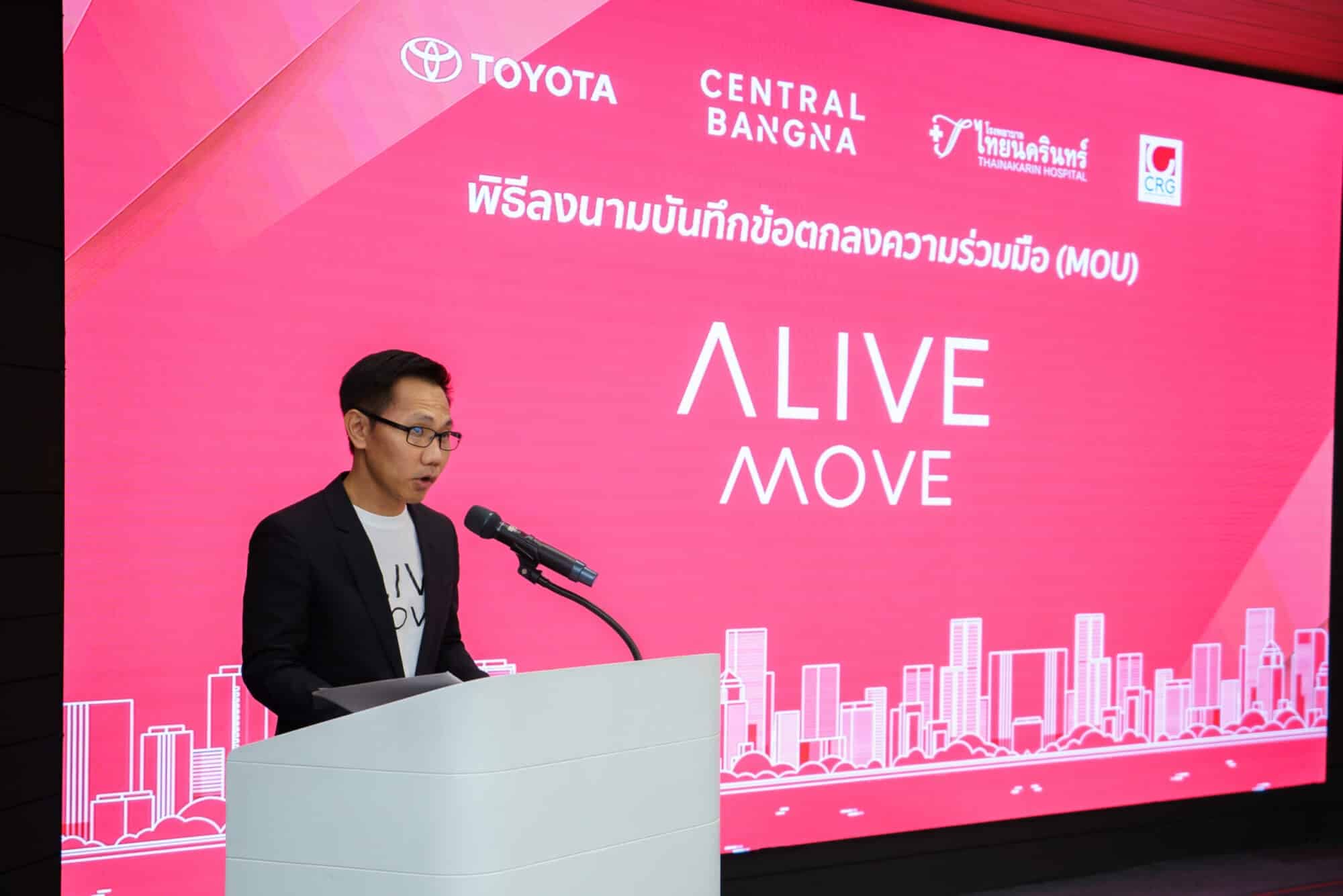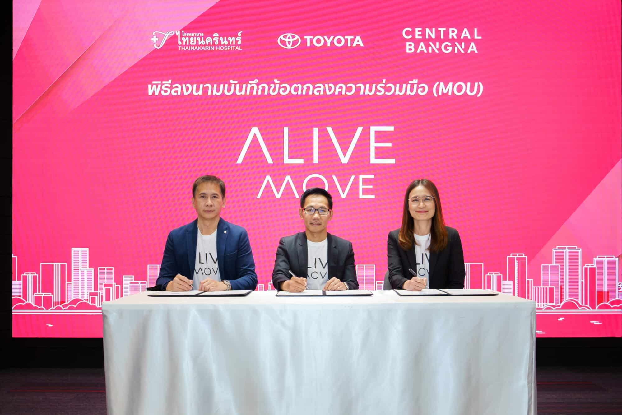 โรงพยาบาลไทยนครินทร์ ร่วมลงนามบันทึกข้อตกลงความร่วมมือ (MOU) กับ โตโยต้า และเซ็นทรัล บางนา เปิดตัวบริการใหม่ ‘ALIVE MOVE’ ขับเคลื่อนความสุขสู่ผู้คน โดยรวม แก้ปัญหาการขนส่ง และอำนวยความสะดวกของคนในเมือง เชื่อมต่อทุกไลฟ์สไตล์แบบไร้รอยต่อ