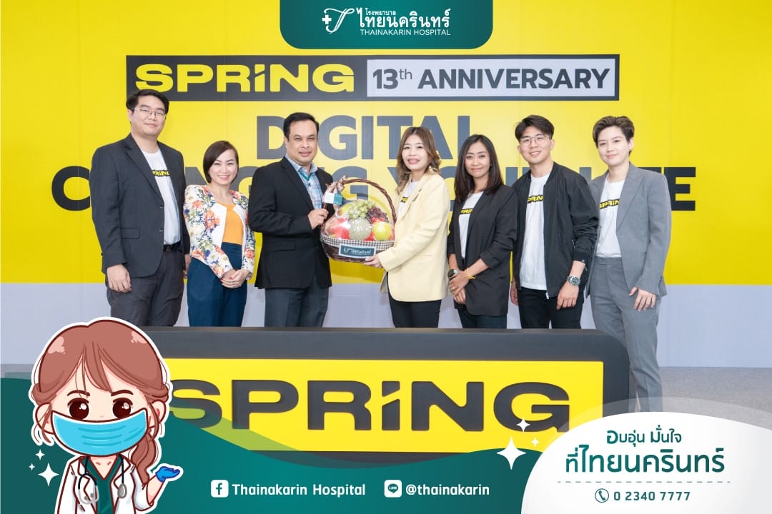 โรงพยาบาลไทยนครินทร์ ร่วมแสดงความยินดีเนื่องในโอกาสครบรอบ 13 ปี ‘สปริงนิวส์’ โดยมี นพ.พิเชฐ ผนึกทอง ผู้อำนวยการงานคุณภาพ และผู้ช่วยผู้อำนวยการบริหาร สายงานการตลาด พร้อมด้วยคุณณัฐพัชร์ พัฒนเทียรฆ ที่ปรึกษาด้านสื่อสารการตลาดและ CRM เป็นผู้มอบกระเช้า และมีคุณอรวรรณ พิพัฒน์ กรรมการผู้จัดการ Springnews พร้อมคณะ เป็นผู้รับมอบกระเช้า เมื่อวันศุกร์ที่ 3 มีนาคม 2566 ณ ชั้น 1 อาคาร 1 อินเตอร์ลิ้งค์ ทาวเวอร์ (ตึกเนชั่น) ถนนบางนา-ตราด เขตบางนา กรุงเทพฯ