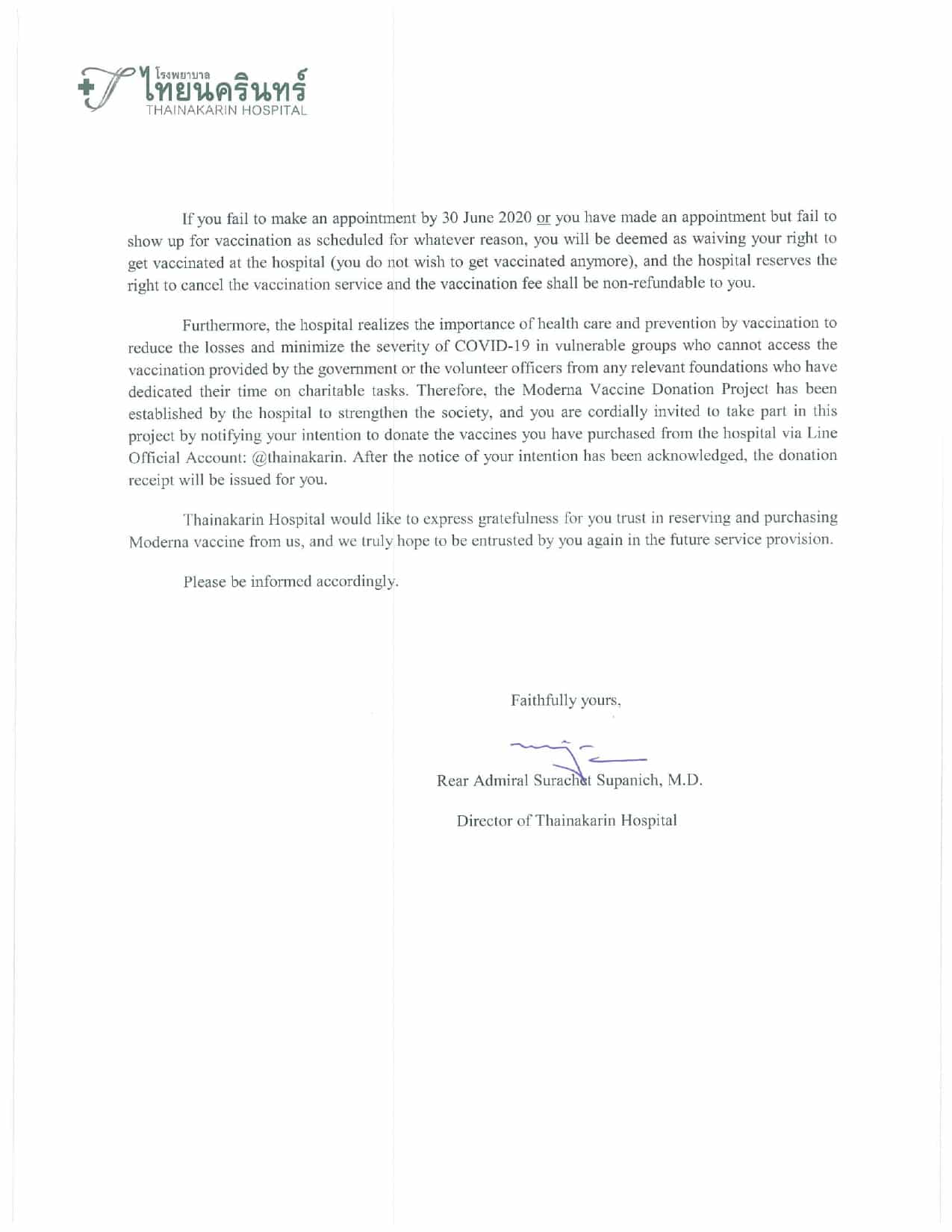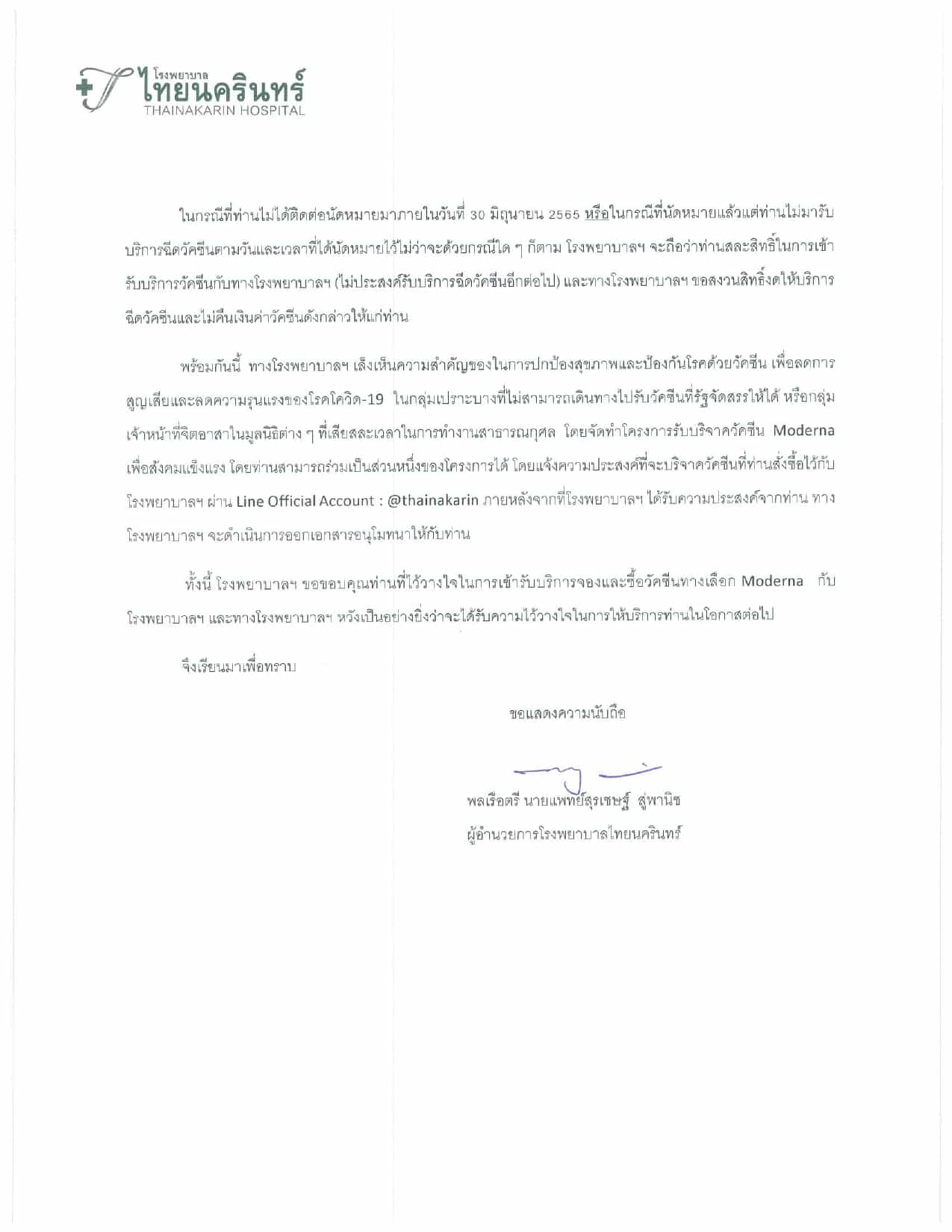 ประกาศวัคซีนทางเลือก Moderna (ภาษาไทย)