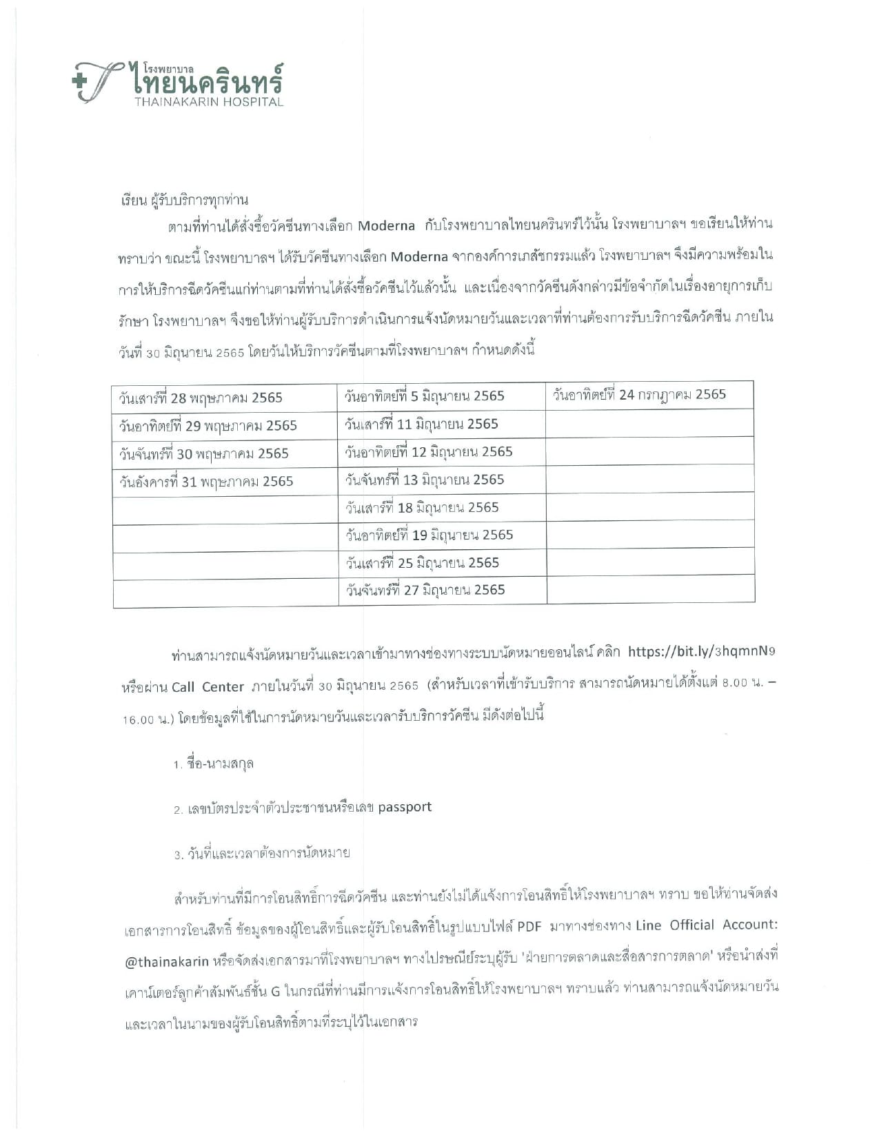 เอกสารประกอบการโอนสิทธิ์วัคซีน Moderna