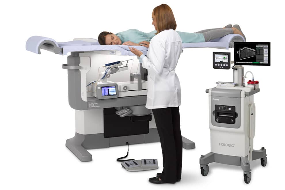 เจาะชิ้นเนื้อเต้านม หรือ Breast Biopsy เป็นการเจาะชิ้นเนื้อโดยการใช้เข็ม เจาะผ่านผิวหนังเพื่อตัดชิ้นเนื้อบางส่วนออกมาตรวจทางพยาธิวิทยา ใช้ระยะเวลาในการทำสั้นและการฟื้นตัวเป็นไปได้รวดเร็ว