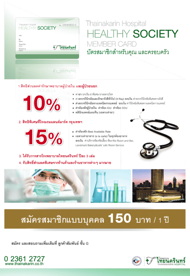 *สิทธิ์ส่วนลดพิเศษจากร้านค้าที่เข้าร่วม สามารถดูได้ที่เว็บไซต์โรงพยาบาลฯ