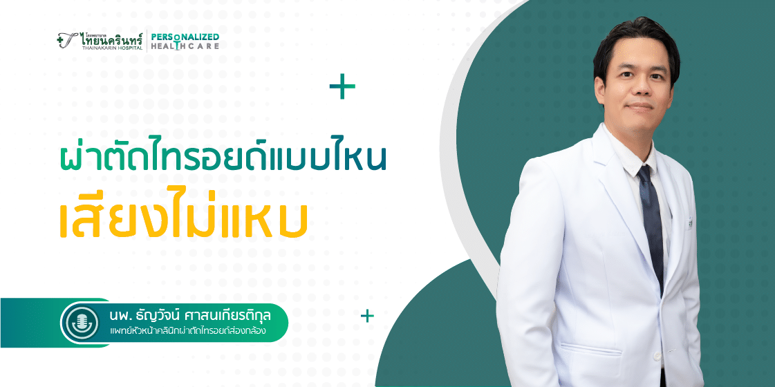 นพ.ธัญวัจน์ ศาสนเกียรติกุล แพทย์หัวหน้าคลินิกผ่าตัดไทรอยด์ส่องกล้อง โรงพยาบาลไทยนครินทร์ มีความชัดเจนของเรื่องนี้มาอธิบายให้ฟังค่ะ